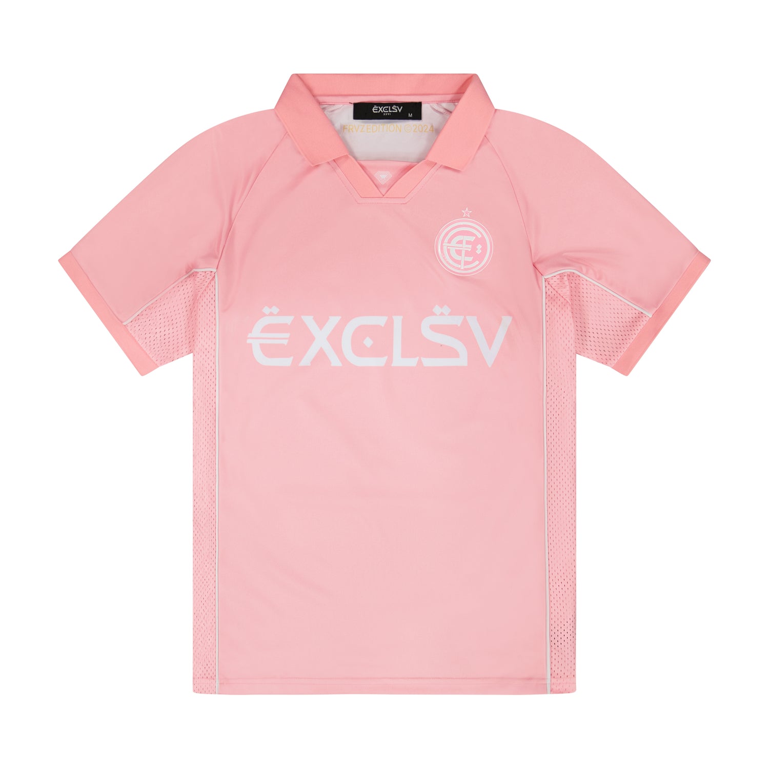 Elevate your style with our Retro Pink Away Jersey. Made of polyester with perforated sides, this jersey features a 3D rubber badge, white piping on the sides, and logo printed on the front. Diamond printed on the collar.